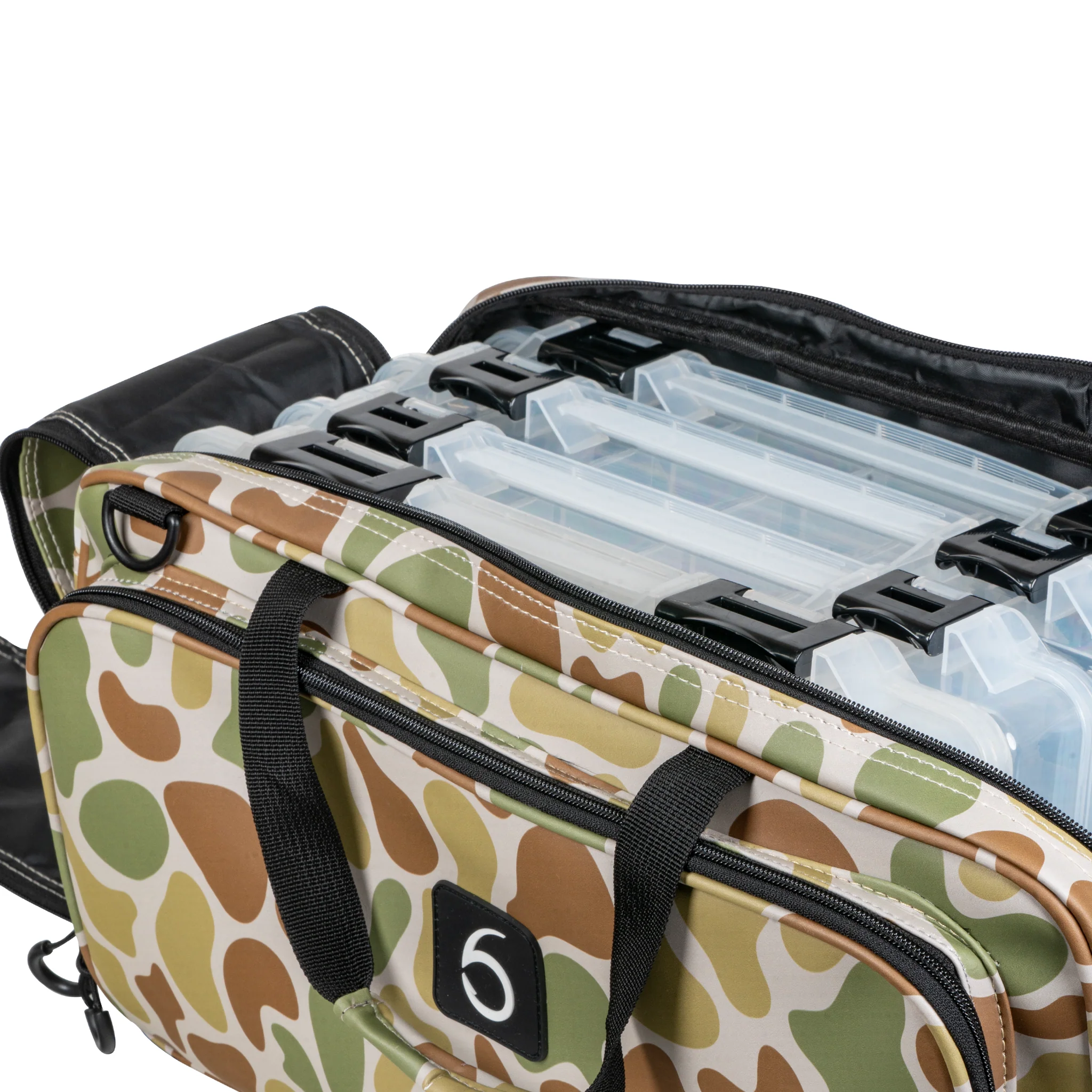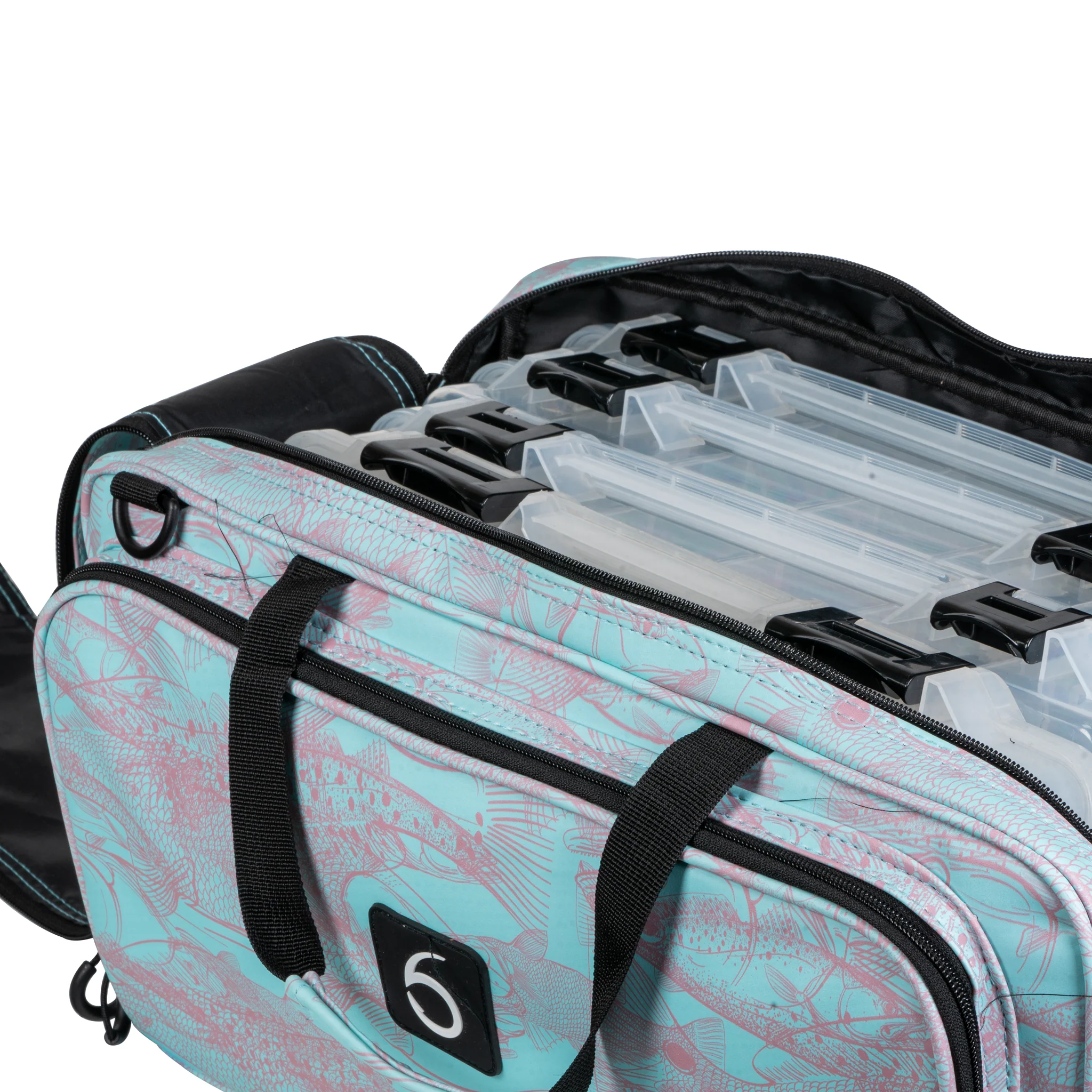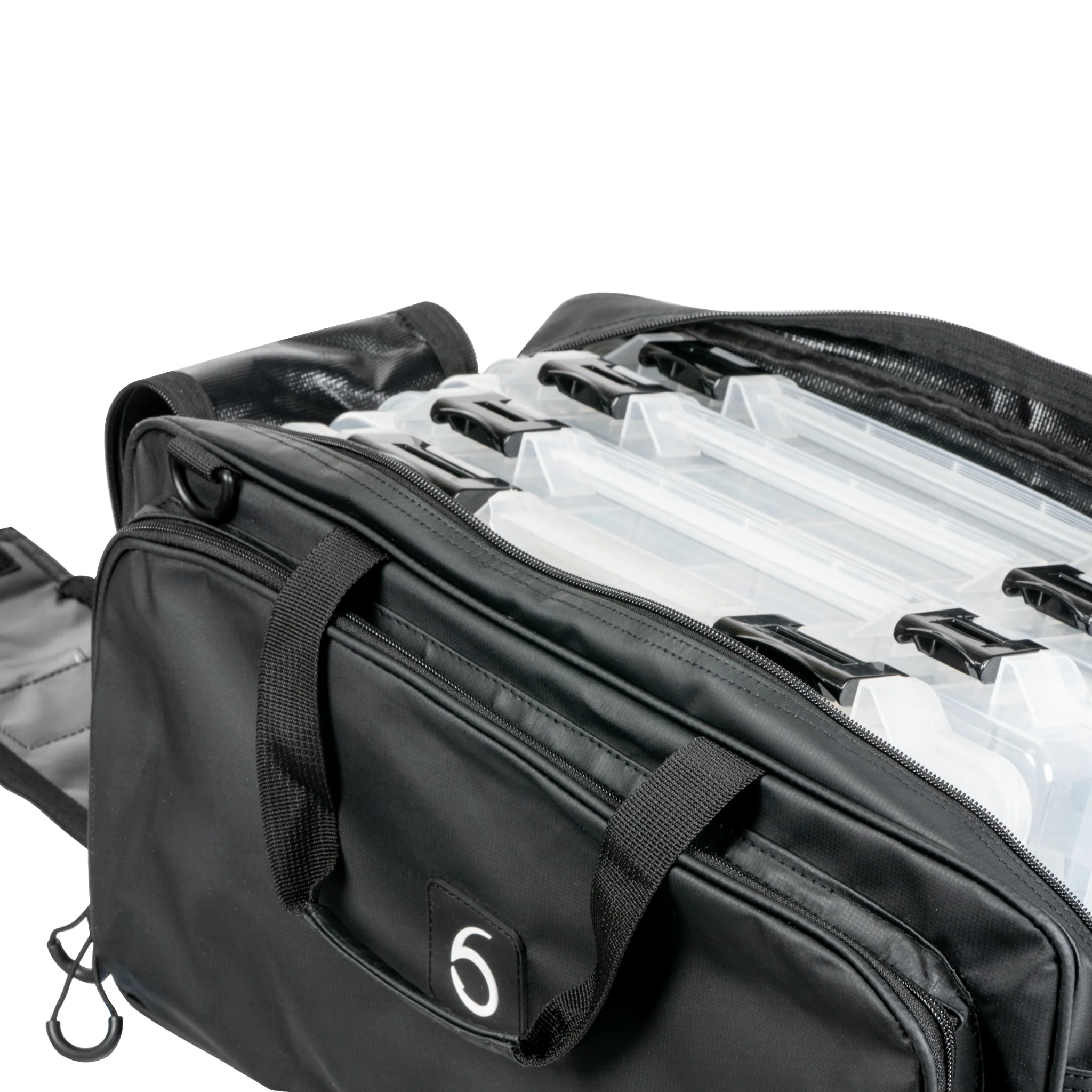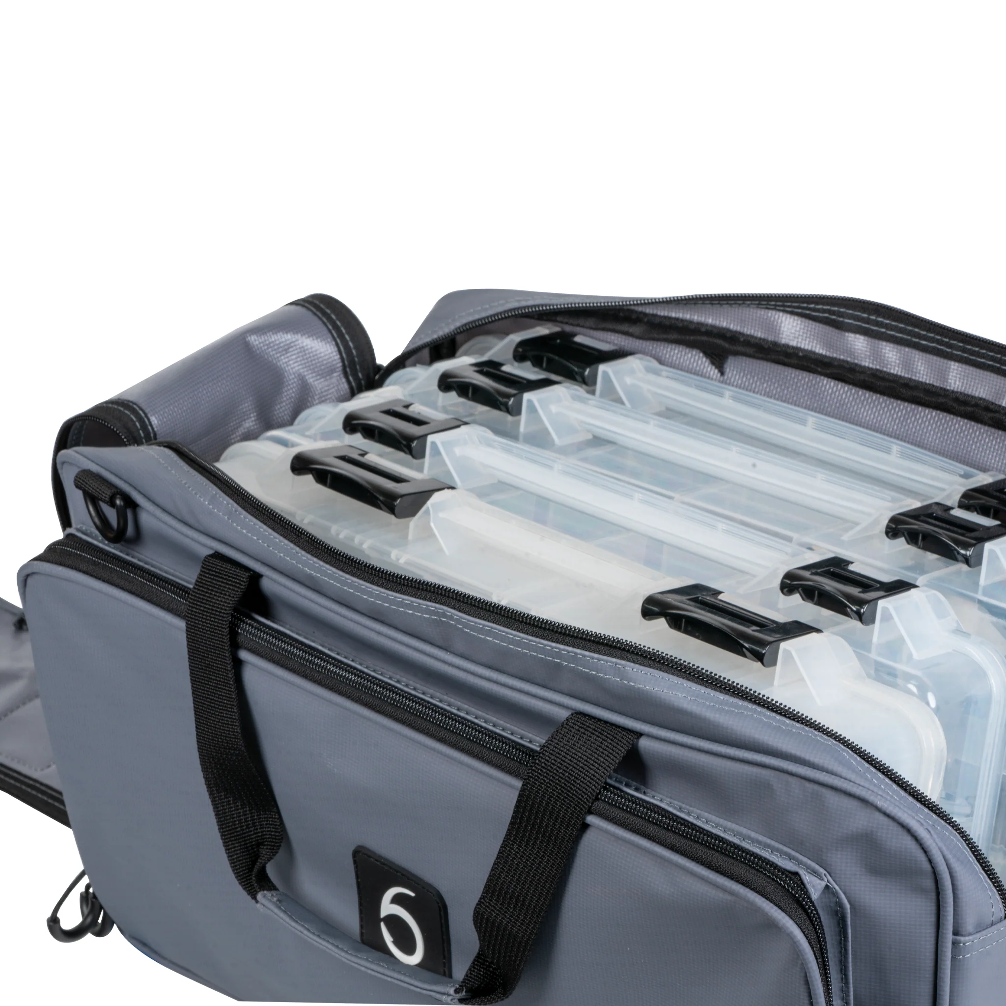 Los bolsillos laterales con doble cremallera proporcionan espacio adicional para plásticos blandos, herramientas, sedales y aparejos sueltos, manteniendo todo organizado y protegido. Tanto si te estás preparando para un torneo, una misión en la orilla o si la metes en la camioneta para un viaje de fin de semana, esta bolsa mantiene tus artículos esenciales seguros y al alcance de la mano.